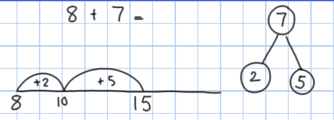 In Maths we have started our new topic of Addition. We have been looking at how we can add two single digit numbers together. We have done this using part-part-whole models and tens frames with counters. The focus has been making 10 first. For example, 7+5=, we make ten first, 7+3=10, we then still have part of the 5 and we know that 3+2=5 so then we need to add the 2, 10+2=12.